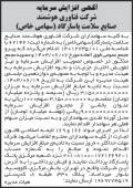 روزنامه اطلاعات آگهی افزایش سرمایه شرکت فناوری هوشمند