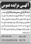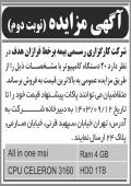 اطلاعات آگهی نوبت دوم مزایده فروش 20 دستگاه کامپیوتر آگهی