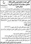 نمونه آگهی دعوت سهامداران