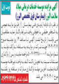 روزنامه اطلاعات آگهی جذب نیروی کار در موسسه خدمات درمانی آگهی جذب نیروی کار موسسه خدمات درمانی میلاد سلامت البرز بیمارستان فوق تخصصی البرز جهت تکمیل کادر پرسنل خود از واجدین شرایط به شرح جدول ذیل دعوت به همکاری می نماید لذا از کلیه