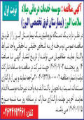روزنامه اطلاعات آگهی انتخاب پیمانکار جهت بخشی از کار ساخت