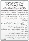 آگهی مجمع در روزنامه کثیرالانتشار اطلاعات