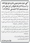 آگهی مجمع سالانه نوبت اول چاپ شده